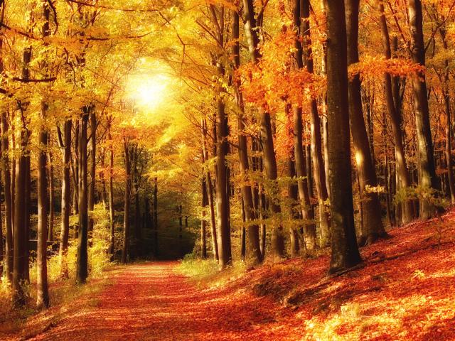 » Wallpaper Bright autumn forest in the sun