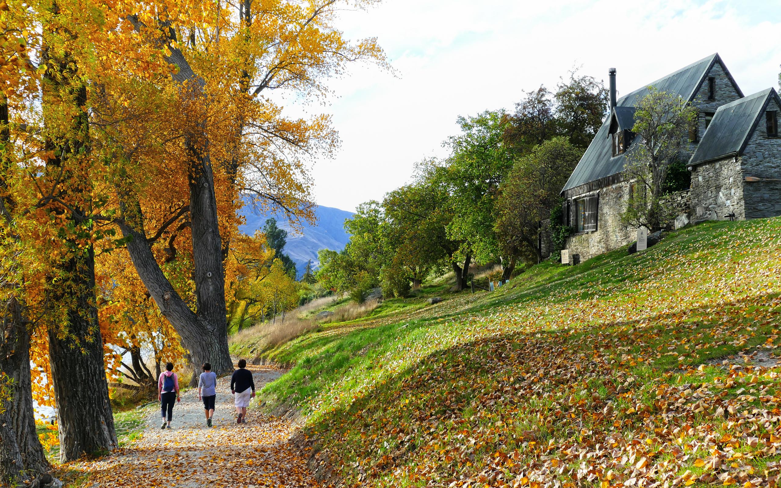 Wallpaper House on a hill near tall trees with yellow leaves