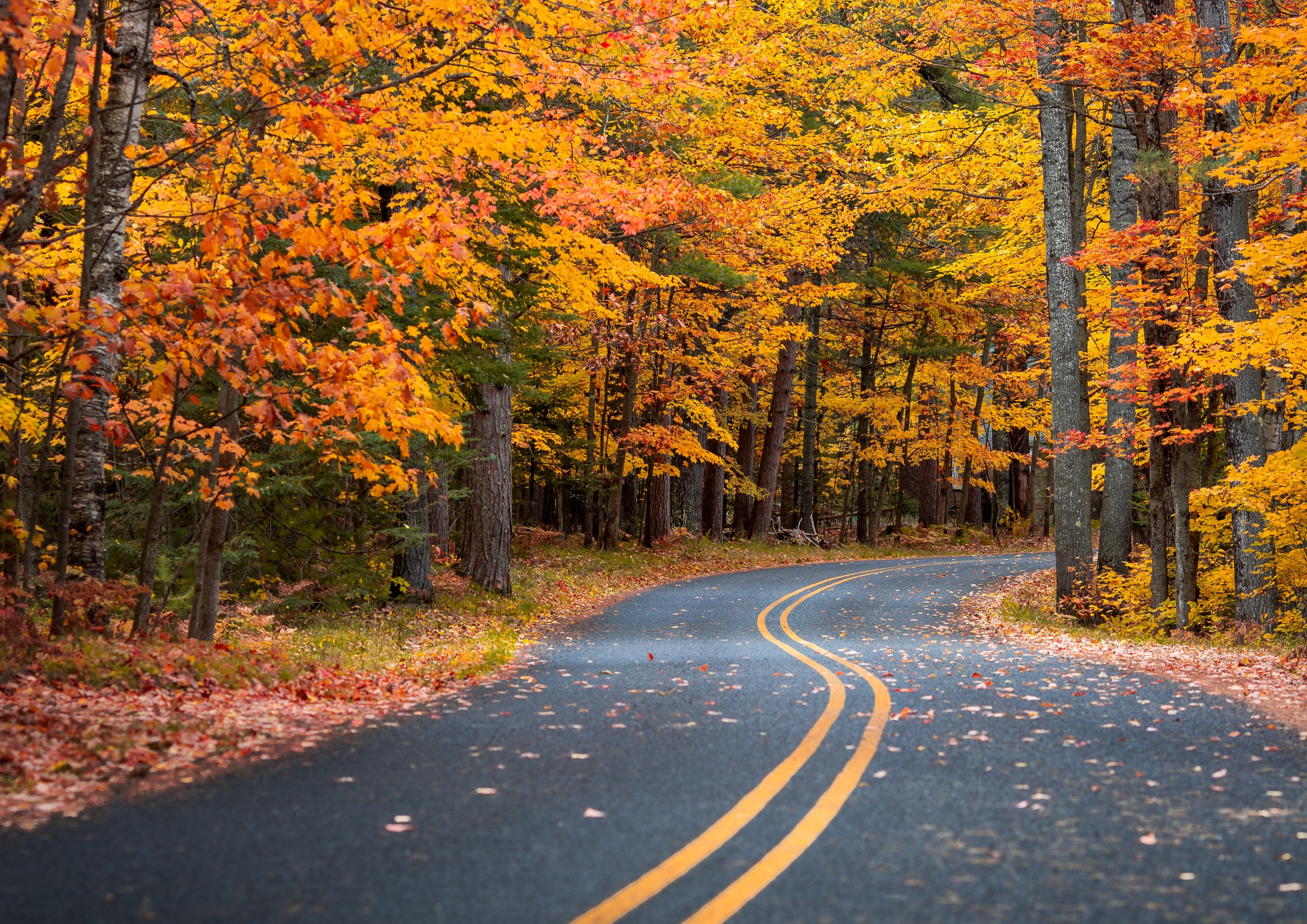Wallpaper Trees, Road, Leaves, forest road, Autumn leaves