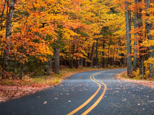 Wallpaper A winding road through the autumn forest
