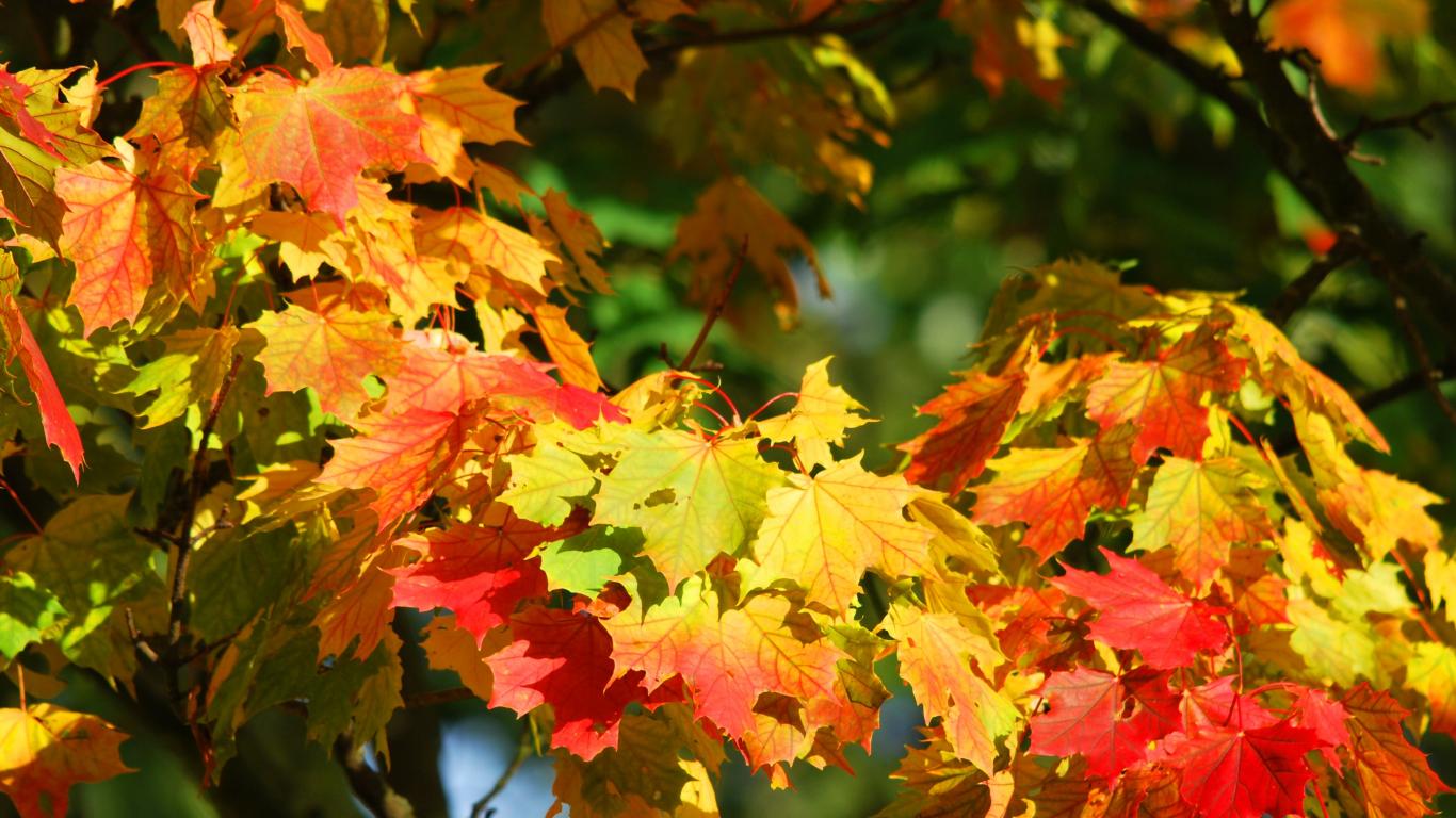 Wallpaper Bright orange maple leaves in the sun in autumn