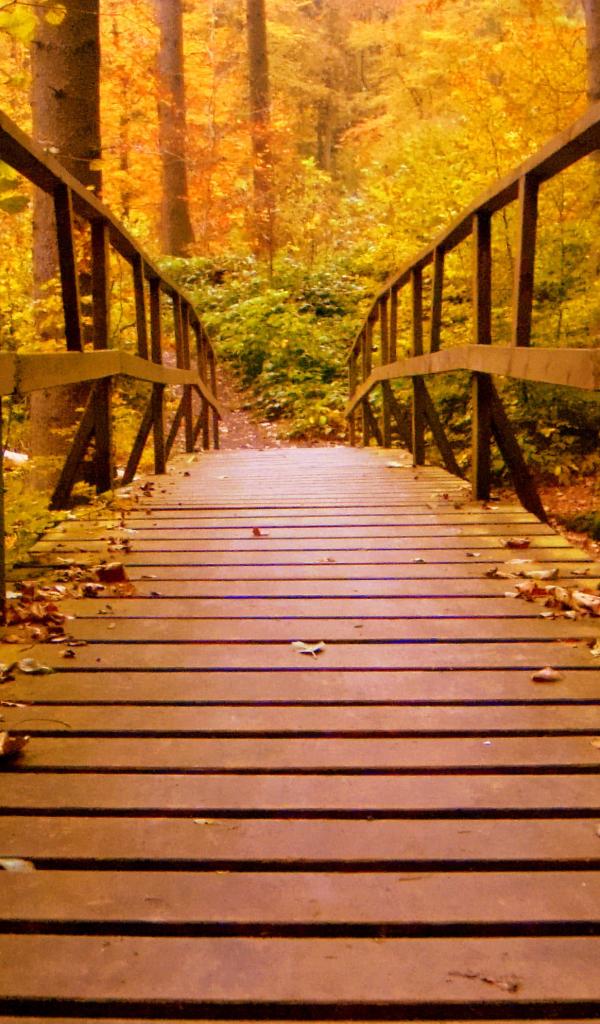 Wallpaper Autumn leaves on a wooden bridge