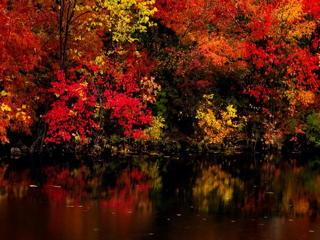 Wallpaper Beautiful autumn trees are reflected in the water