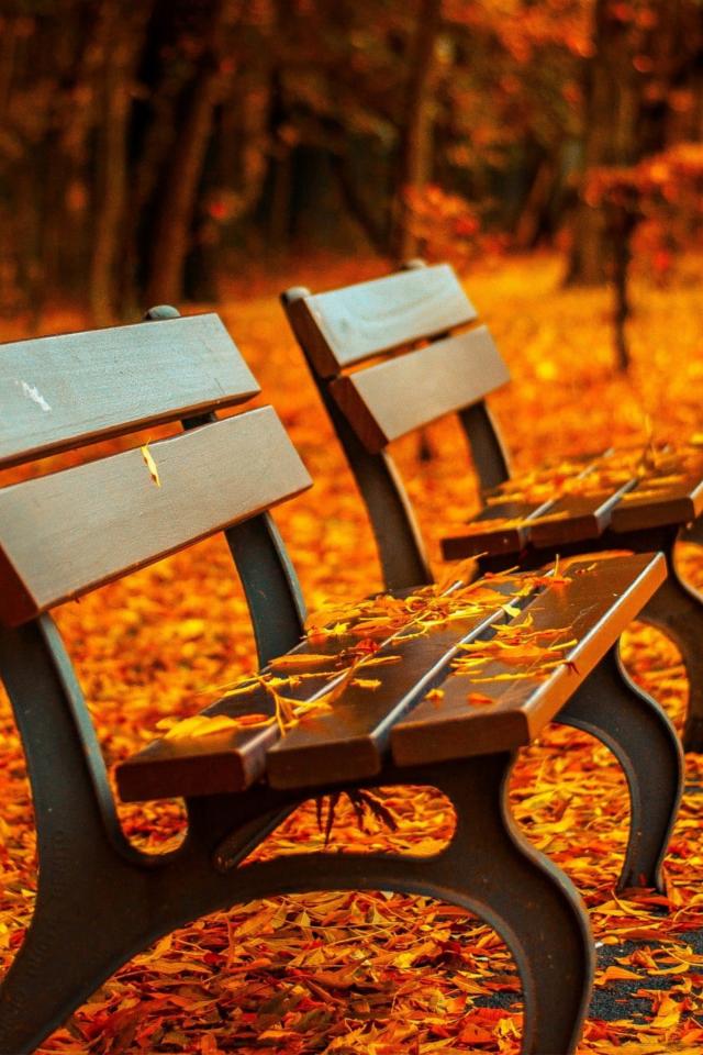 Wallpaper Two wooden benches in a cold autumn park