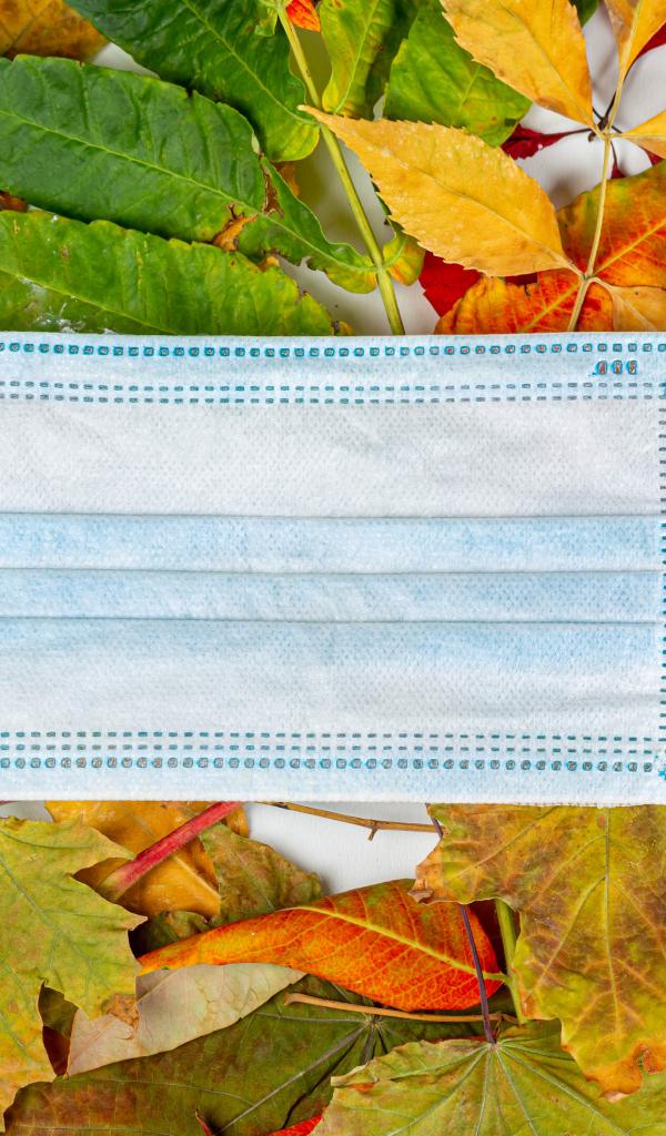 Wallpaper Medical mask for coronavirus lies on autumn leaves