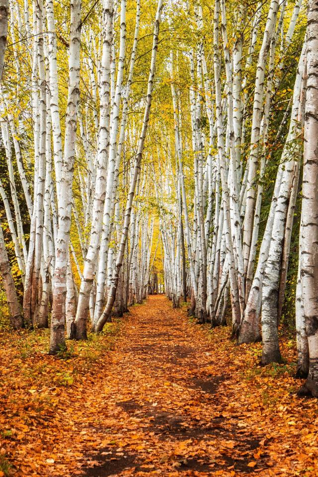 Wallpaper Autumn birch alley