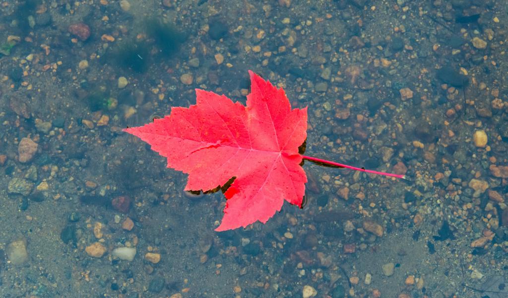 » Wallpaper Red autumn leaf in water