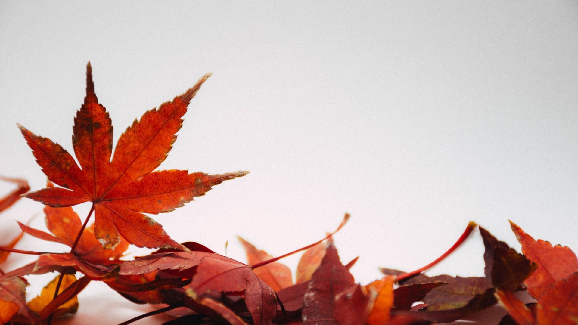 Wallpaper Orange fallen leaves on gray background