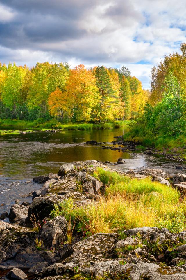 Wallpaper Autumn trees by the river