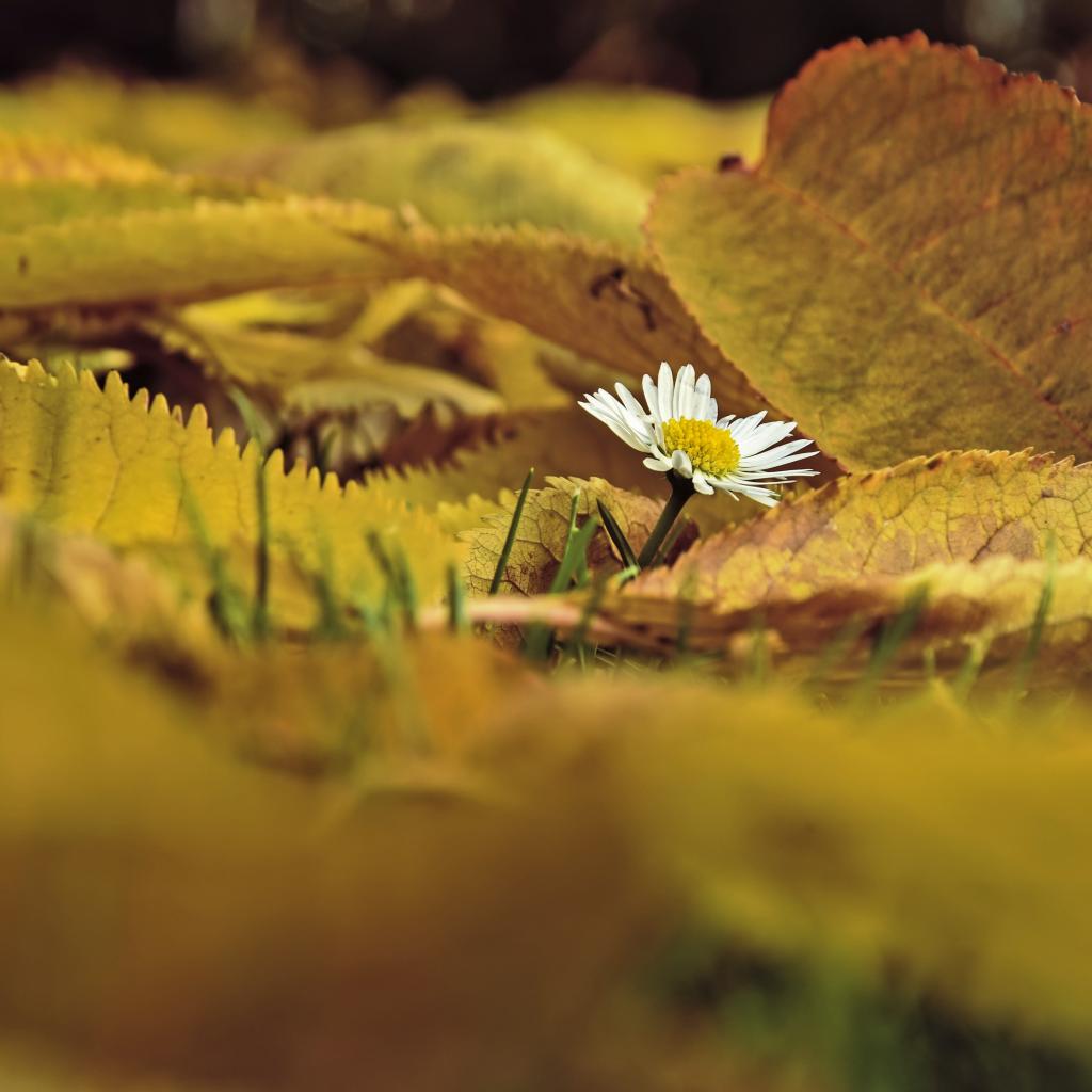 Wallpaper Small white chamomile with fallen leaves