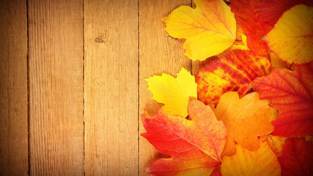 Wallpaper Yellow bright autumn leaves on wooden background