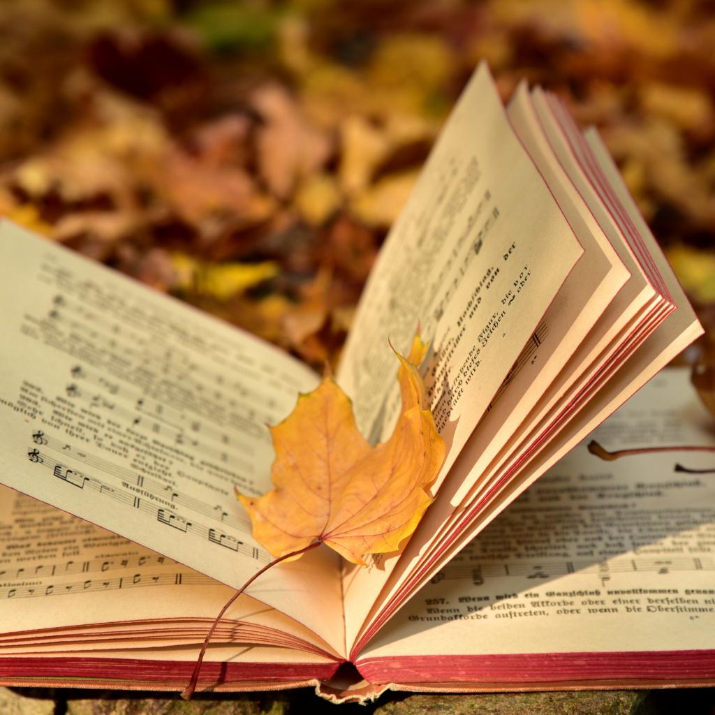 Wallpaper Book with notes on the ground with fallen leaves