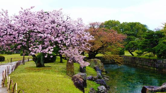 Wallpaper A large flowering spring tree near the pond