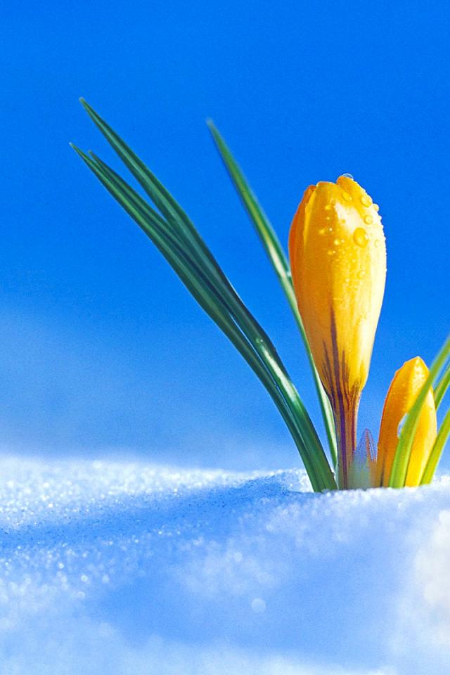 Wallpaper Spring yellow crocus makes its way through the snow