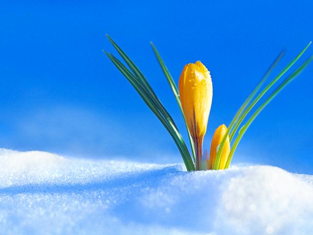 Wallpaper Spring yellow crocus makes its way through the snow