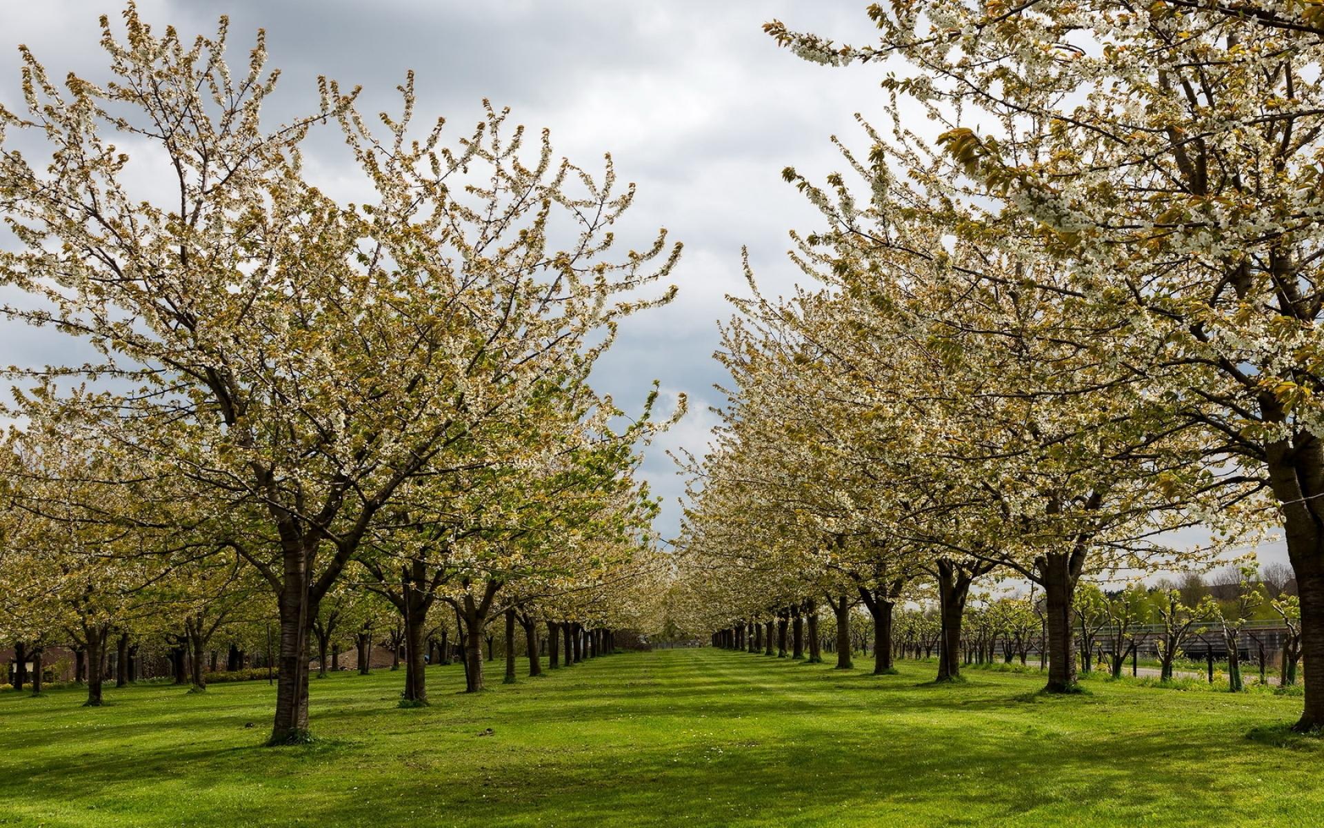 Wallpaper Blossoming spring pear garden