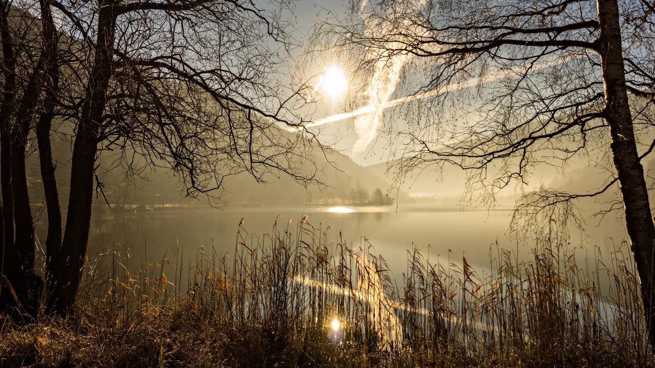 Wallpaper Spring sun in the sky above the pond