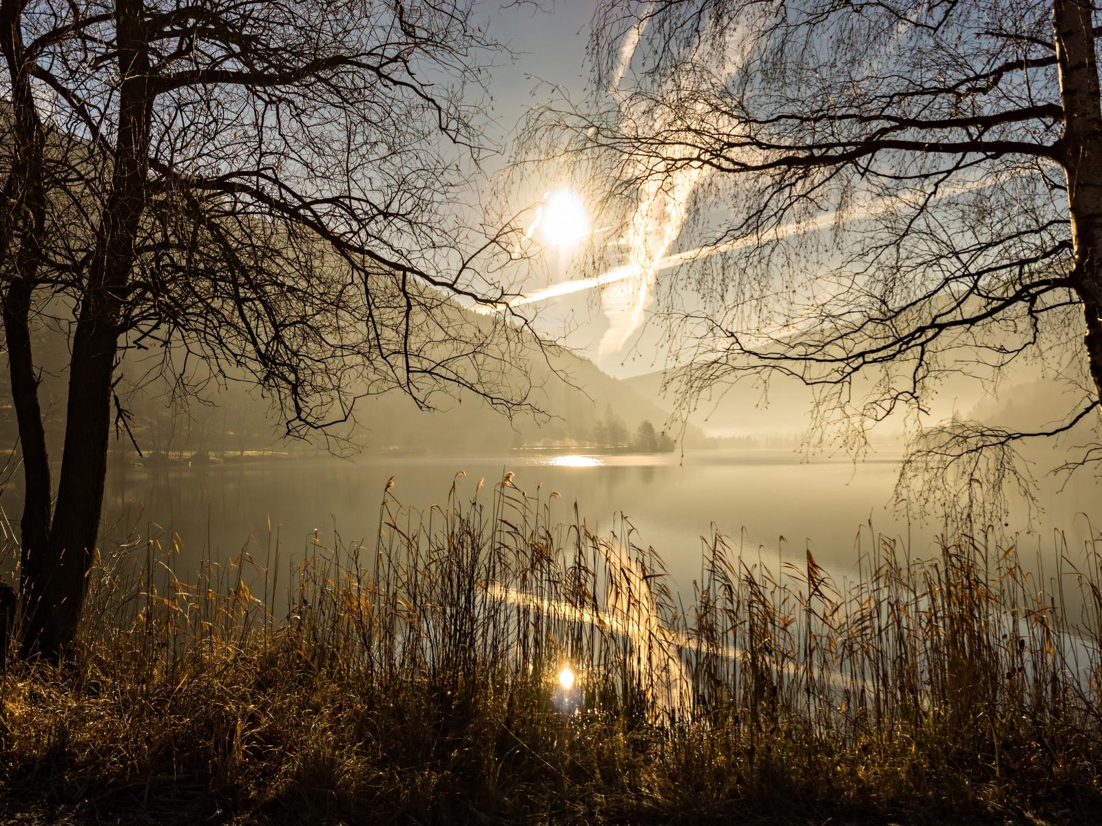 Wallpaper Spring sun in the sky above the pond