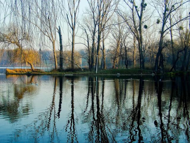 Wallpaper Lively nature in the park by the lake in spring
