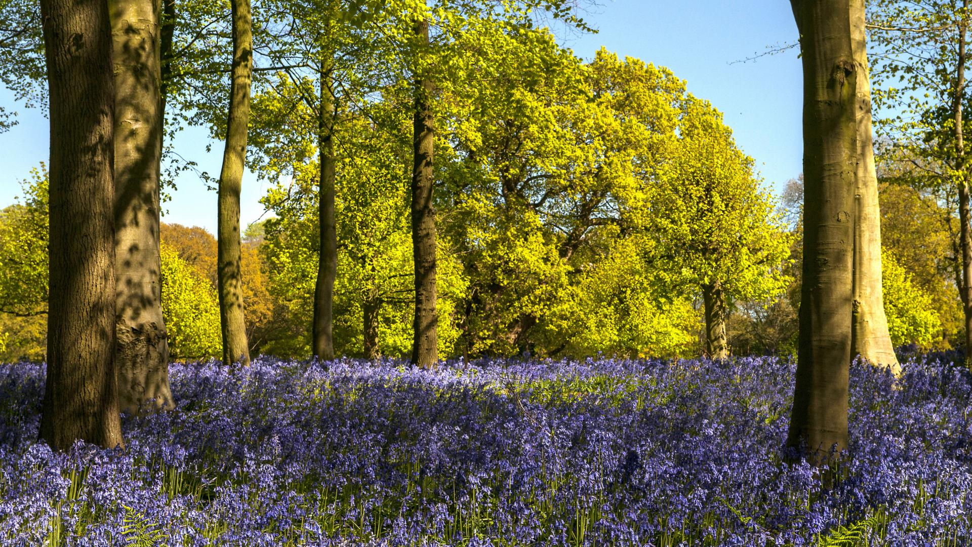 Wallpaper Blue spring primroses in the forest