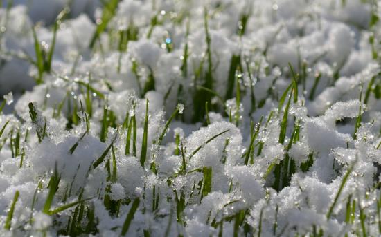 Wallpaper Green grass peeps through the snow in spring