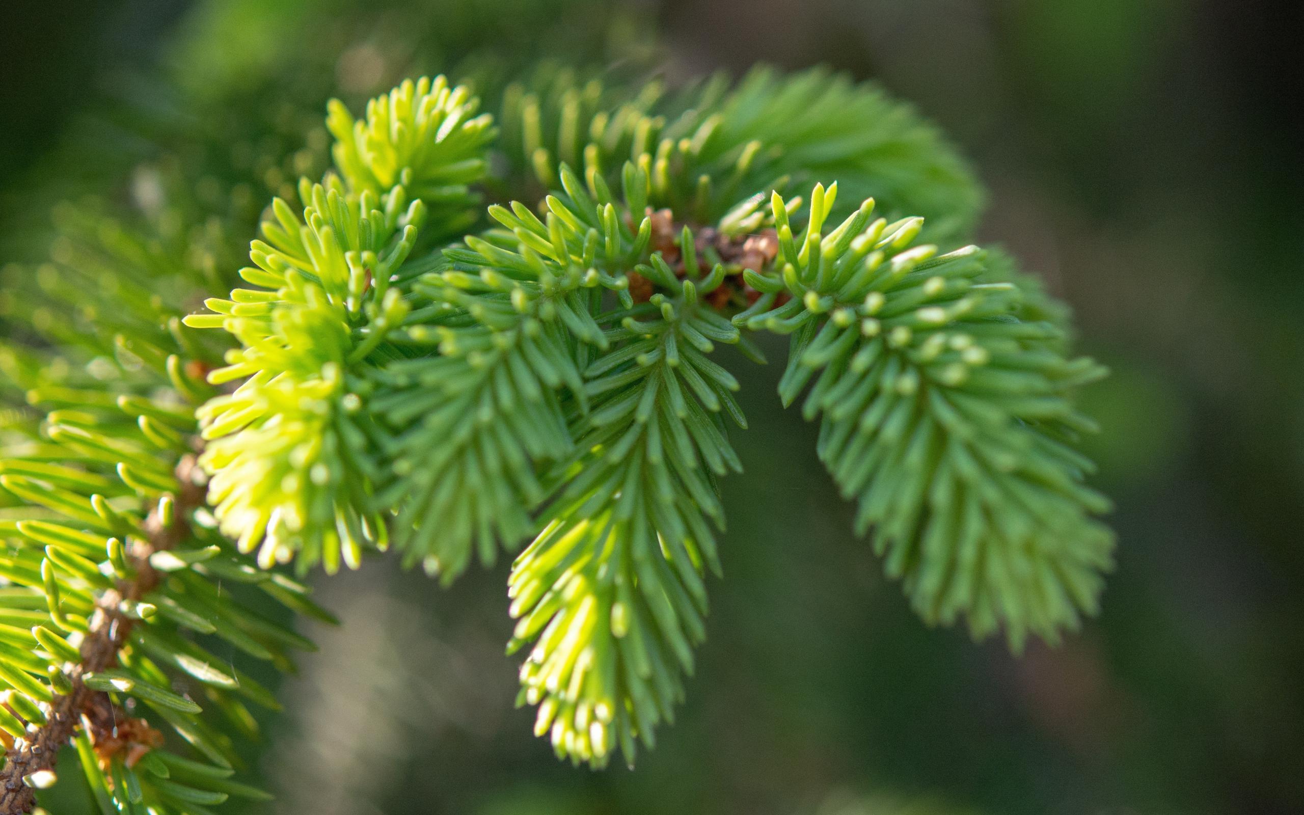 Wallpaper Young green spruce branch in spring