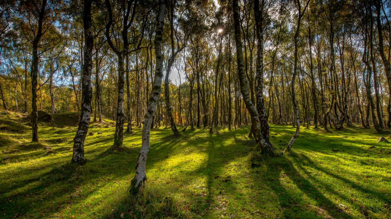 Wallpaper White grass in a birch grove in spring