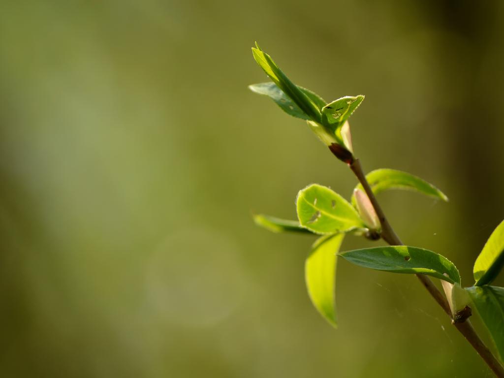 Wallpaper Young green leaves on a branch in spring