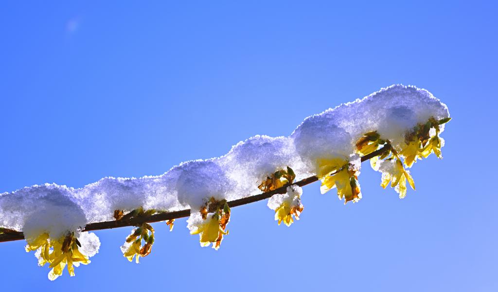 Wallpaper The sun warms up a snow-covered branch in spring