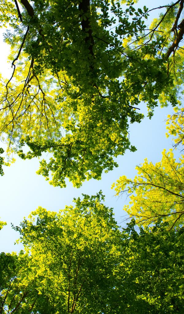 Wallpaper Green tree crowns in spring against the sky