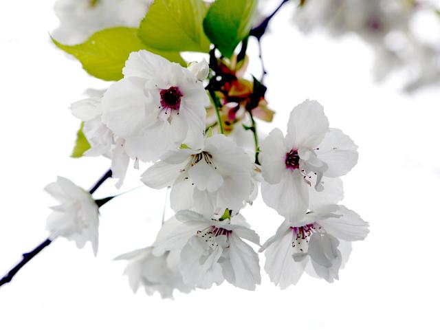 Wallpaper Beautiful white cherry flowers on a branch against the sky