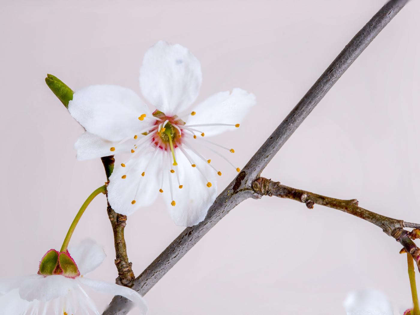 Wallpaper Beautiful white cherry flowers on a branch against the sky