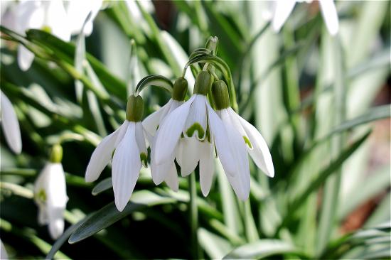 Wallpaper White flowers snowdrops in green leaves