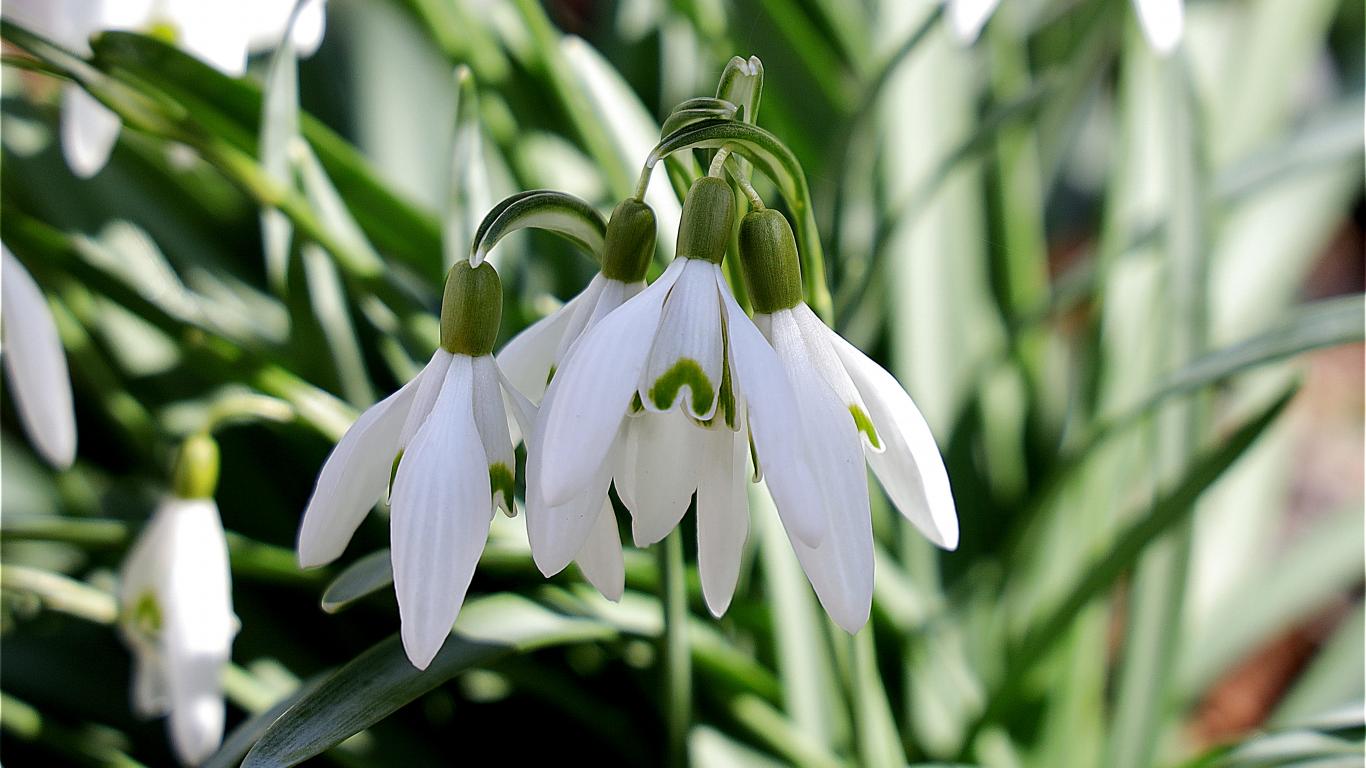 Wallpaper White flowers snowdrops in green leaves