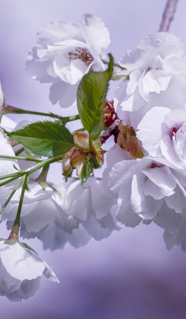 Wallpaper Beautiful white cherry flowers on a branch close up