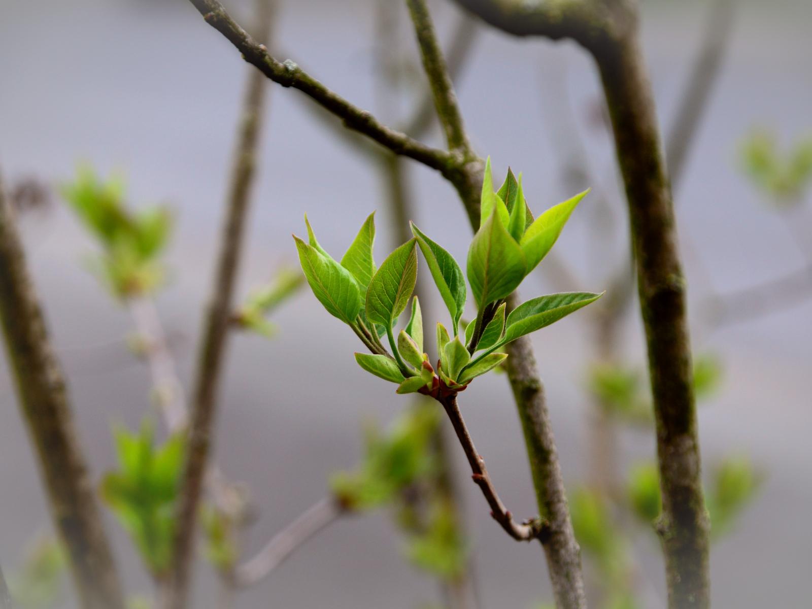 Wallpaper Young green leaves on a tree branch in spring