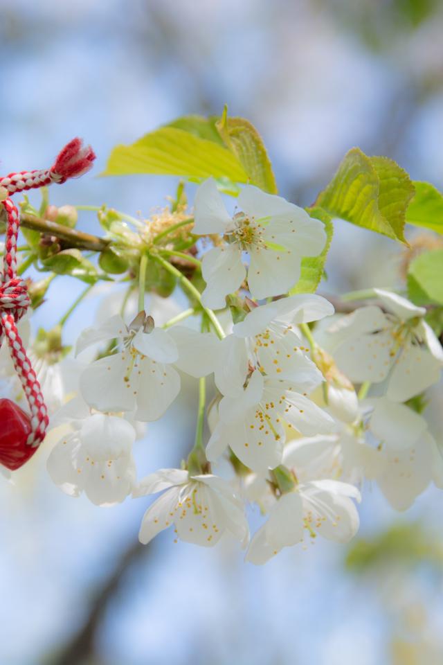 Wallpaper Decoration on a branch of blooming cherry close-up