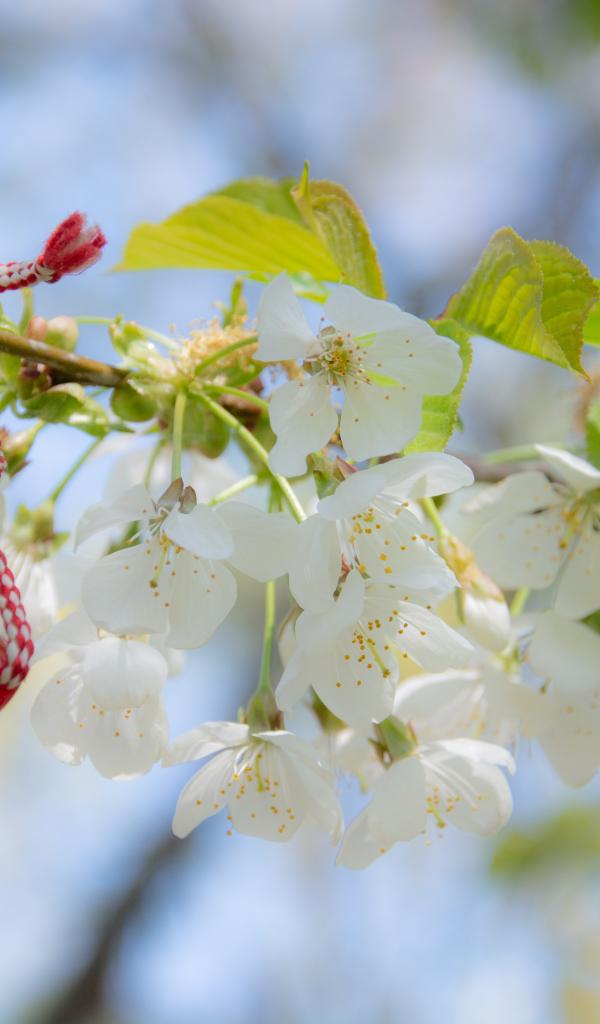 Wallpaper Decoration on a branch of blooming cherry close-up