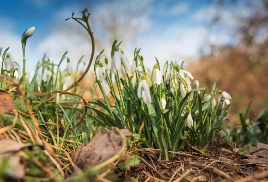 Wallpaper Small white snowdrops in the forest in spring