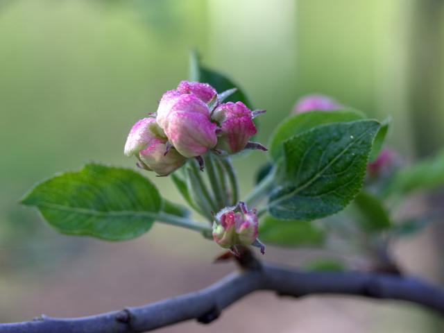 Wallpaper Pink flower blooms on a branch of an apple tree