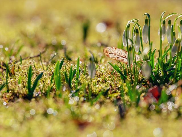 Wallpaper White snowdrops and crocuses make their way through the snow in spring