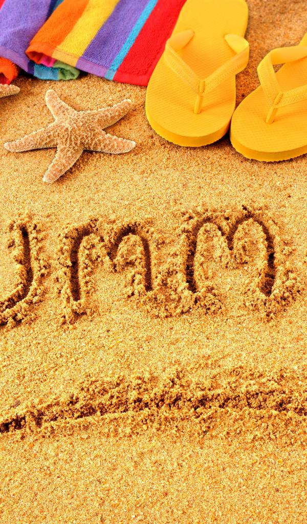 Wallpaper Inscription summer in English on sand with slaps