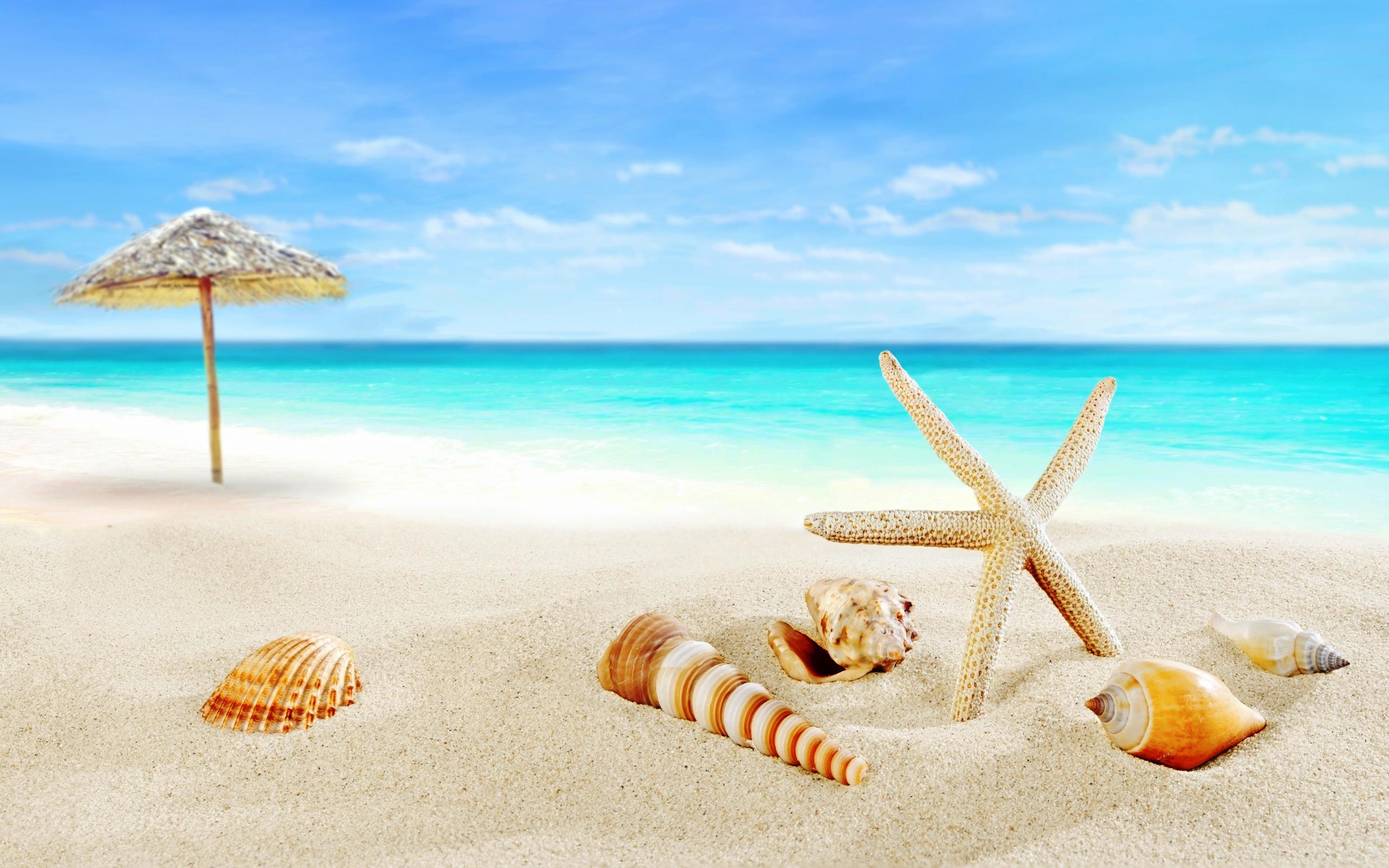 Wallpaper Sea shells on white warm sand by the sea in summer