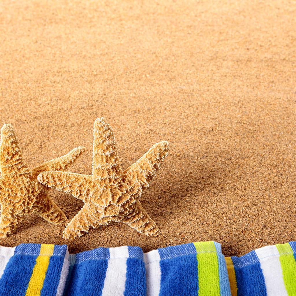 Wallpaper Two starfish on the yellow sand with a towel