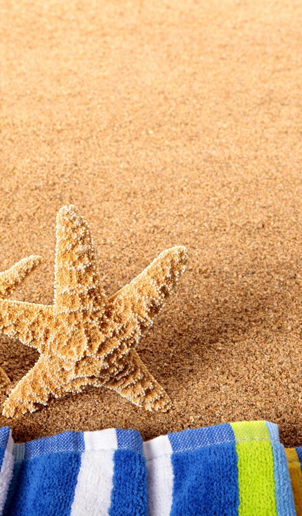 Wallpaper Two starfish on the yellow sand with a towel