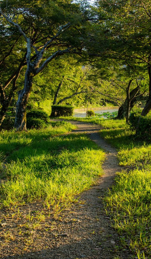Wallpaper Beautiful green park with lake in summer