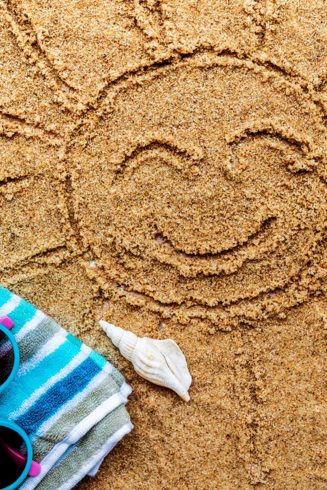 Wallpaper Sand drawn sun with hat and glasses in summer