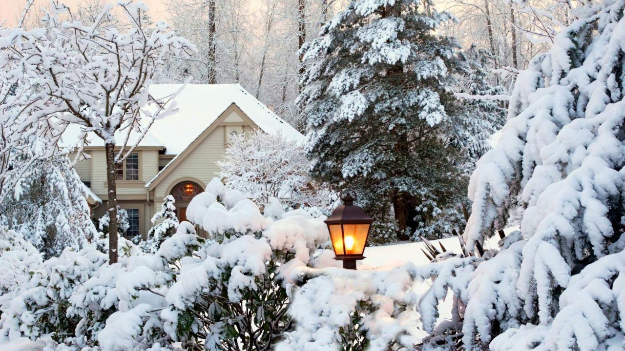 Wallpaper House among the snow-covered trees