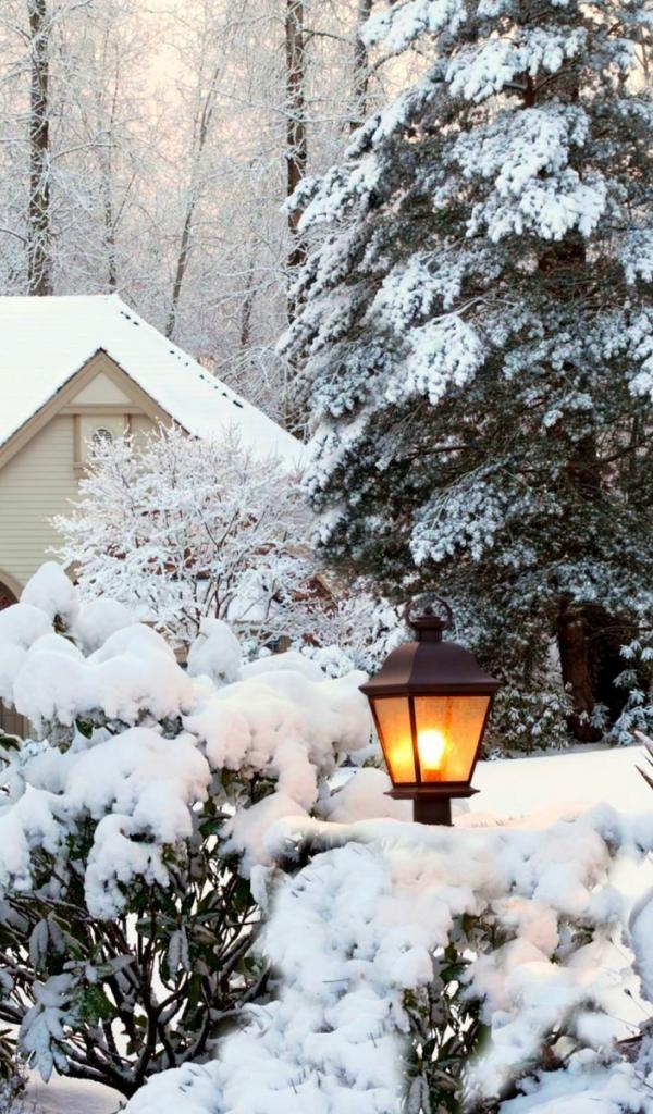 Wallpaper House among the snow-covered trees