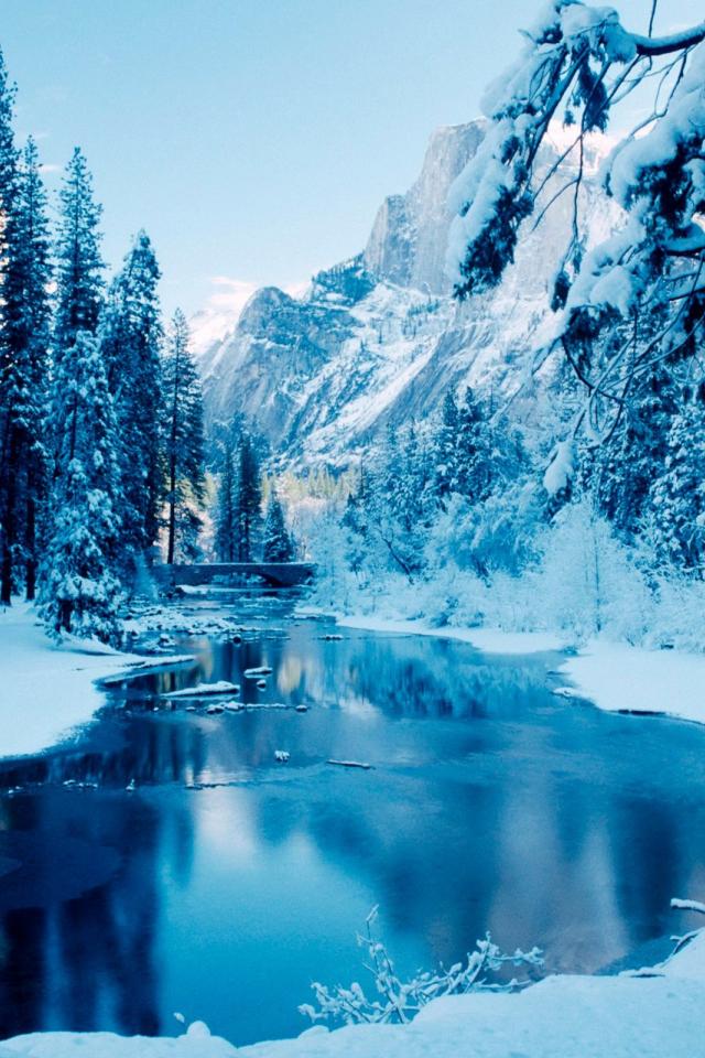Wallpaper River in the mountains in winter
